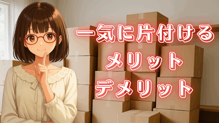 片付けで失敗しない!注意ポイント集 【一気に片付ける】コツコツ片付けとの違いとメリット・デメリットを徹底解説 一気に片付けたい人必見!コツコツ片付けとの違いやメリット・デメリット、失敗を防ぐコツや向いている人の特徴をまとめました。 2025.08.08 片付けで失敗しない!注意ポイント集
